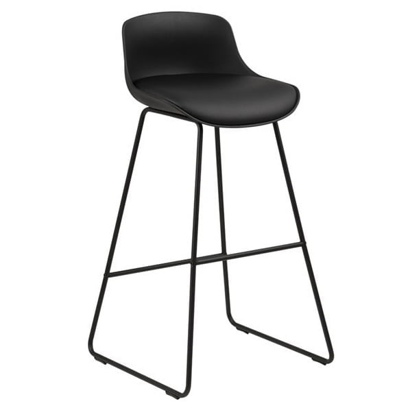 De barkruk Teun heeft een slede voet van zwart metaal en een eigenzinnige kunststof kuip met kunstlederen zitting. Een mooie barkruk voor je feest of aan je bartafel. Geschikt voor een barblad van maximaal 105cm bovenkant blad.